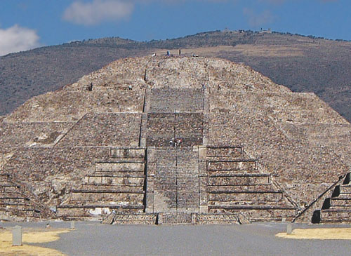 W0007: Teotihuacan – Pyramid on the Moon However, it isn’t just Lamanai that employed this technique; the tyrannous pyramids of Teotihuacan could be considered the forerunners of this style. In fact, Temple A1 (fig. W0761) and the Pyramid of the Moon (fig. W0007) have striking similarities, albeit on a vastly reduced scale, which add credence to the theory that Teotihuacan may have influenced the construction of Altun Ha’s new religious centre.