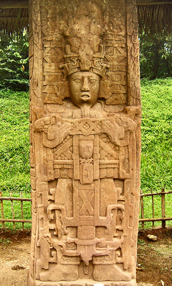 Stela C at Quirigua features Cauac Sky and was built in 775AD. It features glyphs relating to the beginning of time and plays a crucial role in our understanding of the Maya calender and their religion, as it is one of a trio of stones designed to commemorate the Mayan Creation Myth.