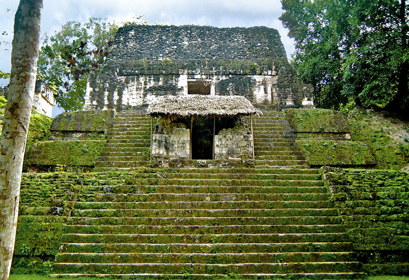 This is Structure 5D-87, which is also known as the Temple of the Skulls on account of the Skulls found on the stairway flanking a vaulted niche. This version of the building is the third phase and was completed in the 8th century.
