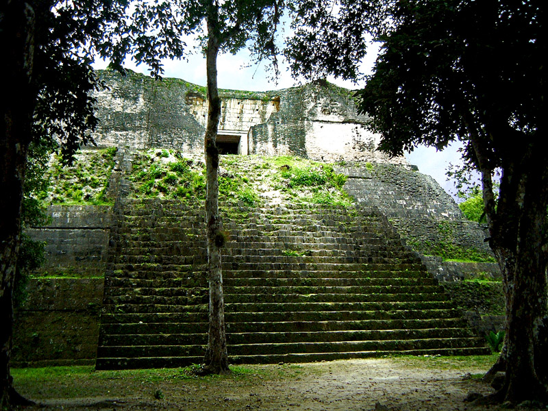 This is a temple from Group H at Tikal and dates to the Late Classic period, 600-900AD. This photo epitomises the way the ancient buildings are enclosed by the jungle, with the upper sections reaching above the trees.