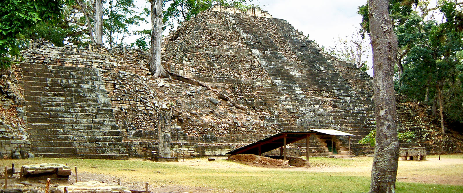 Stela N (Back)Copan was founded by Tikal, possibly under the instruction of Teotihuacan, in 426AD to increase the trade of the jade coming from mines of the Motagua Valley. The site was already populated by non-Maya and the trade was already a big industry. However, there is no evidence of violence surrounding the event, with a Lord named Yax K’uk’ Mo’ arriving from the west to take the throne and start building a new Mayan city on this new southern frontier. Within just a few days of arriving in the area, he installed his own vassal, Tok Casper, to control the Motagua River from another already settled site 40km away at Quirigua. Therefore, it seems that the expansion agreed with the local populace, who perhaps wanted the Maya to come and develop the region and its trade to bring about their own wealth and safety. For the next three centuries, Copán and Quiriguá dominated this southern boundary of the Mayan territories with seemingly no external threat of any kind. Growing wealthy from trade and without the need to fund wars or build defences, the people of Copán developed a highly advanced society with increasingly abstract religious and political ideas. Copan operated an unusual feudal system, which may have been agreed in 426AD before the Maya moved in. The system included a Council of 9 Lords of nearby towns, such as Las Sepulturas, which is only 4 kilometres away, who would convene at the “Popul Naah” (Council House), that sits in the East Court within the religious centre of the City.