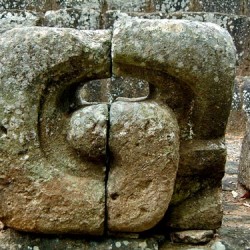 Altar N The Hieroglyphic Staircase contains over 1200 blocks of stones and is by far the longest Mayan text historians have to try and decode this mysterious language – which, thanks to Copán, has been largely deciphered. Hieroglyphs are also found on the majority of monuments at Copan, but it isn’t just hieroglyphs that record the history and traditions of the Maya. The monuments themselves are also heavily encoded with imagery and iconography which meant they could be read like a books. These icons were often animal parts that demonstrated power, such as large claws or curling fangs, or super-natural spiritual powers that were represented by features such as necklaces, feathers, large ear plugs, long noses, and spiralled eyes. Combining these icons on single pieces of art more-often resulted in a beastly incarnations of alien looking animals and characters.