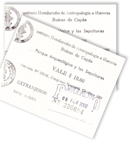 Entrance tickets to Copan from 2002.