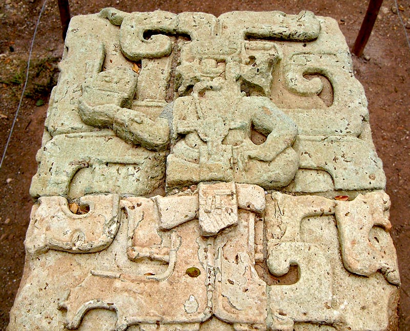 Copán July 19, 2014 800 × 646 Copán Ball Court Stone This stone is one of three that are thought to mark out a metaphorical sacred Ball Court in front of the southern face of Templo 11 in the West Court. © Robin Heyworth – Photo taken 9th February 2002