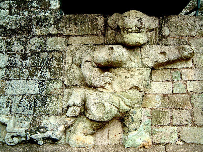 Looking immensely like the jovial character Tigger from the Winnie the Pooh stories, this dancing feline is that of a Waterlily Jaguar and adorns the walls to the side of the Jaguar Stairway, underneath the image of the Sun God, Kinich Ahua.