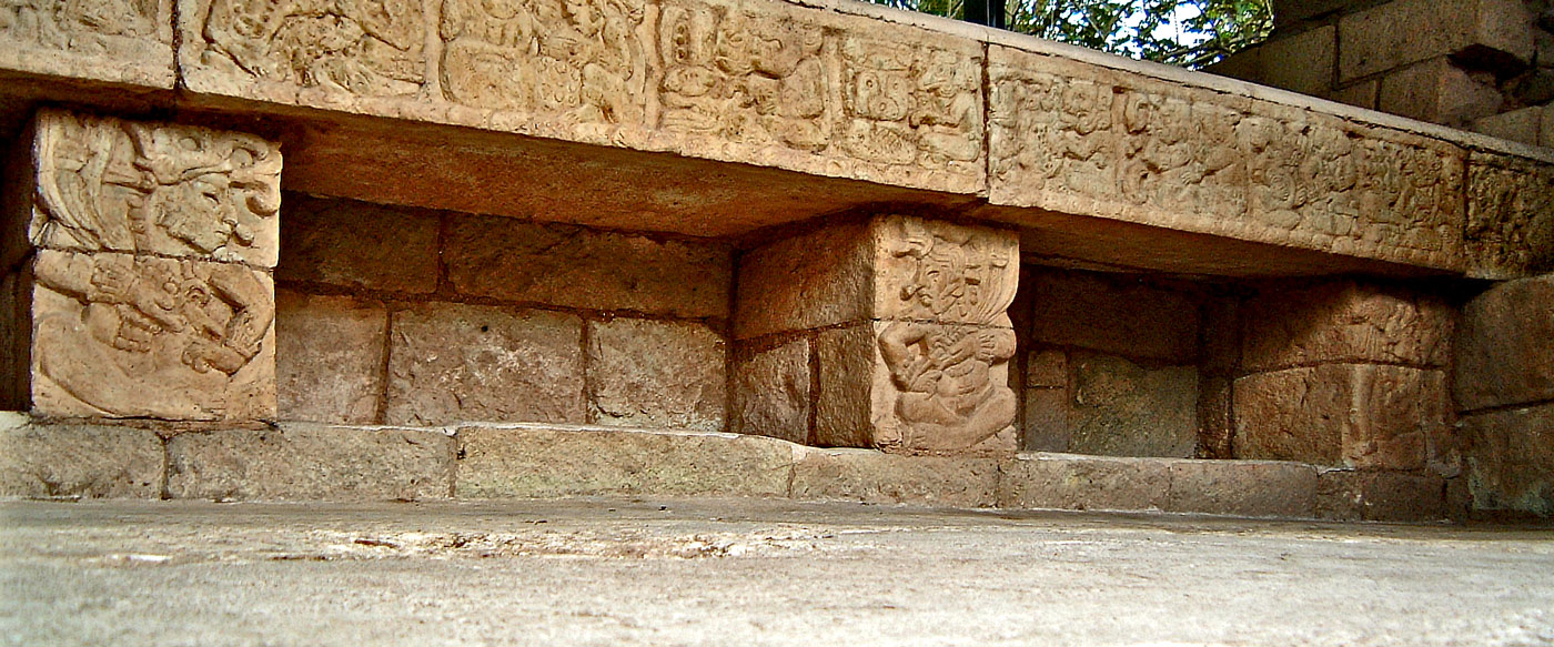 Structure 9N-82 The highlight of a trip to Las Sepulturas is almost certainly the mysteriously regal Structure 9N-82, which is also known as the House of The Ba’kabs. Outside, the finely carved false windows feature the busts the elderly Pauahtun holding a shell and stylus. Inside Structure 82 is an incredible carved bench, similar to that commissioned by Yax Pasaj found in Structure 10L-18 at Copan. This bench is the subject of much speculation – so read more about it in the article on the House of the Ba’kab.