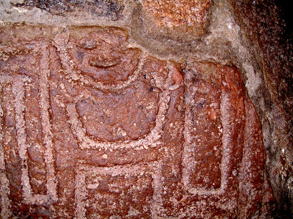 This etching, known as a petroglyph, is found inside of the Temple of Quetzalcoatl. It is unlclear what it represents, if anything, and why it was etched hidden away in the darkness. I took this photo using the camera flash in the pitch dark, hence the context is lost – as are the extremes of the image. From recollection, I hadn’t bought a torch at this point as it was only the 2nd site we had visited and we weren’t familiar with the nooks and crannies that one can explore at sites like this. Therefore, my explorations were guided by a cigarette lighter. Apparently, their are many bigger and better petroglyphs that have a known meaning – so if you do go exploring then take a torch.
