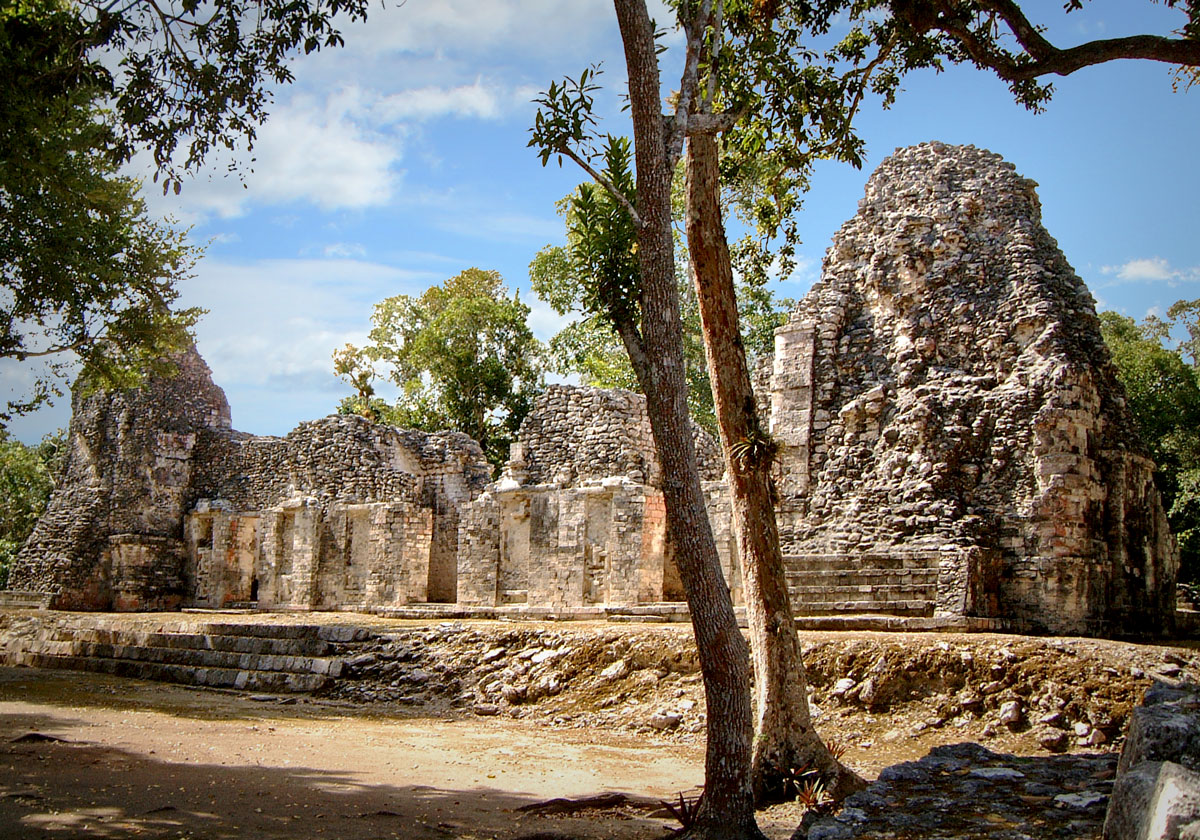 Chicanna Structure I is a near perfect example of the twin tower architectural style known as the Rio Bec. However, Structure II is small in comparison to Rio Bec temples found elsewhere in the region. The two ornamental pyramids at either end would have been perfect markers for recording the position of the sun set. See the article Structure I & the Rio Bec style for more information.