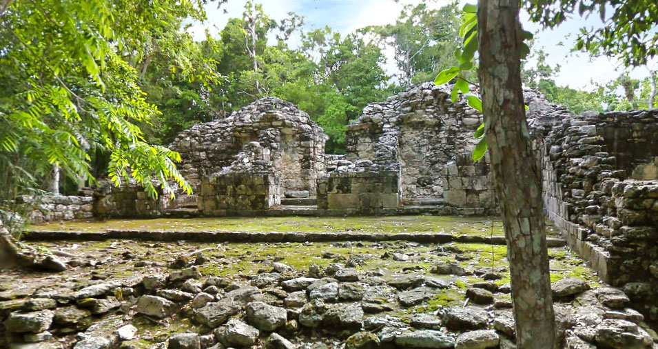 The eastern face of the central section of Chicanna Structure XI appears to be the oldest section. The roof vaults and wall construction doesn’t conform with Classic Period Rio Bec architecture. The interior rooms also don’t conform to normal Rio Bec blueprints.