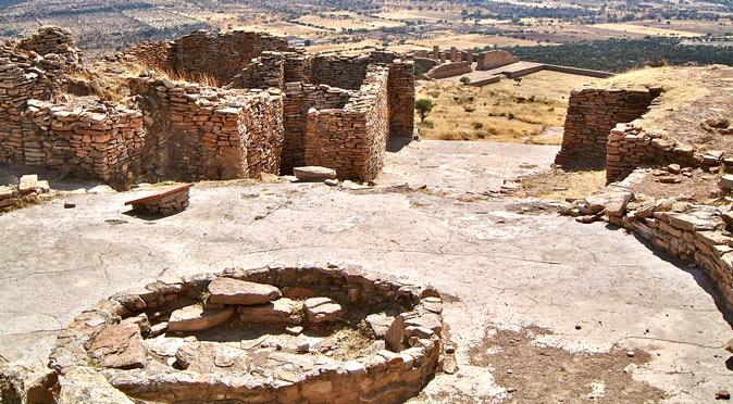 The highlights of La Quemada begin with its dramatic remote location, which adds an air of adventure amidst the wilderness. The first building you encounter is the iconic Hall of Columns, which was one of the most gargantuan buildings ever erected in Mesoamerica. From there, you walk along the processional causeway, through the Ball-Court, and on towards the mysterious, non-stepped, Votive Pyramid – a unique masterpiece that exudes elegance. To the left of the pyramid is a set of incredibly steep stairs which take you to the Cuartel, the hub of La Quemada’s daily life. You then continue to negotiate your way along precarious terraces and perilous stairways, around the hill and up the hill through five tiers of architectural brilliance, much of which was designed to work as a magnificent timepiece that enabled religious dignitaries to track the solar and cosmological events. La Quemada is undoubtedly a spectacle that is well worth the lengthy travel getting there to explore.