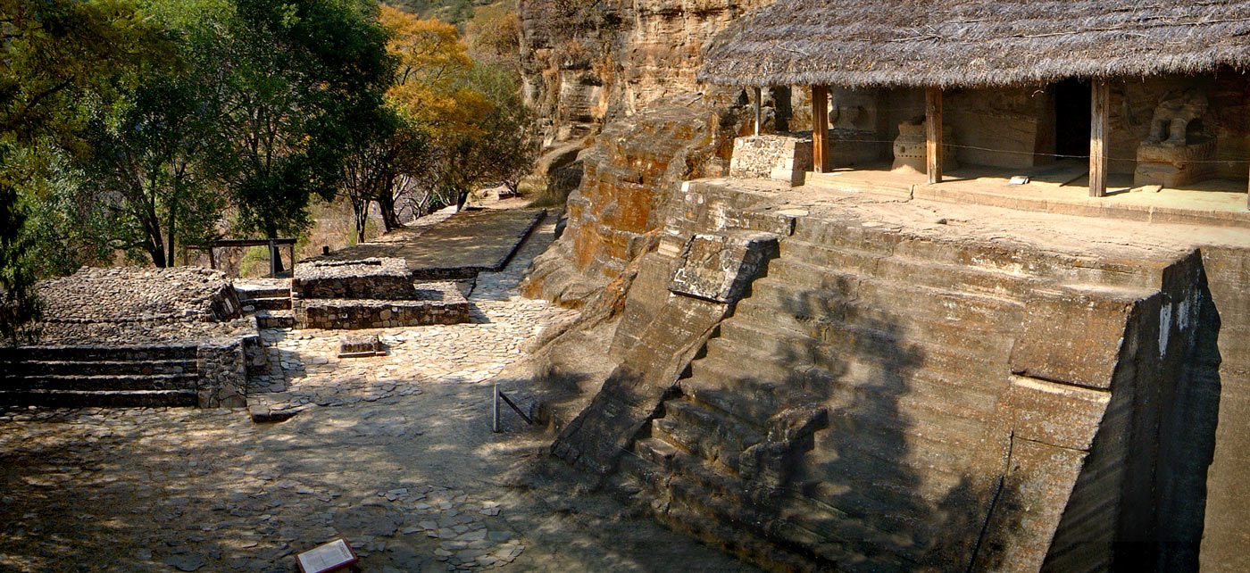 Cauachalli TempleFlanking the building and its entrance are the remains or statues that were also carved out of the rock-face as the builders chiselled back to create the temples façade. Inside, the builders carved a large circular enclosure, with a bench running around the wall which features an incredible carved jaguar pelt – which was carved as the builders hollowed out the hill-side. Three eagles, also carved into the rock, are found inside the temple and these are what give the temple, and the complex, its name.