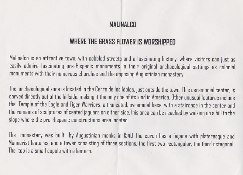 Malinalco & Cuauhtinchan August 27, 2014 800 × 578 Malinalco & Cuauhtinchan Flyer 2001 Flyer received whilst touring around Malinalco in 2001