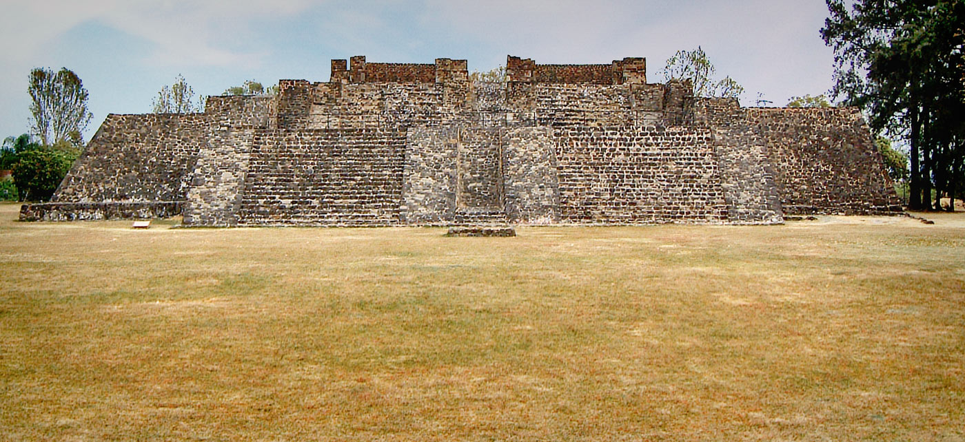 Teopanzolco is locked within the suburbs of the modern city Cuernavaca, with which it almost certainly shares its history. Cuernavaca, known to the Aztecs as Cuauhnāhuac, sits on the edge of a lava flow high upon the altiplano less than 30 miles south of Mexico City. The so called “City of Eternal Spring” made an ideal setting for agricultural development; with fertile soils, a steady climate, and a consistent annual rainfall – all provided by the volcanic mountains and high altitude plains. Civilised occupancy in the area stretches back to the Early Formative Period (1100-900BC), although this was broken for the best part of a millennia – possibly due to the eruption of nearby Mt Xitle.