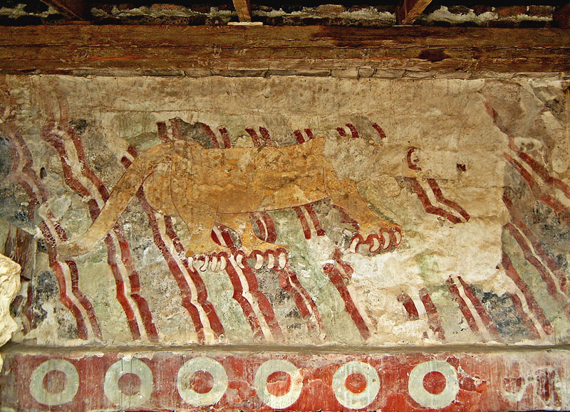 Teotihuacan October 21, 2014 800 × 579 Teotihuacan Puma Mural This Puma Mural is found under shelter on the east side of the Avenue of the Dead, just before entering the Plaza of the Moon. © Robin Heyworth – Photo taken 10th December 2001