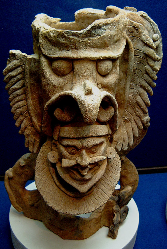As with W0375 and W0376, this is a fire-basket used for burning incense during rituals or wood to keep a room warm. The museum list all three as being found by Carlos Pellicer Camara within the “gruta de Tapijulapo”. This one features quite different imagery than the other two.