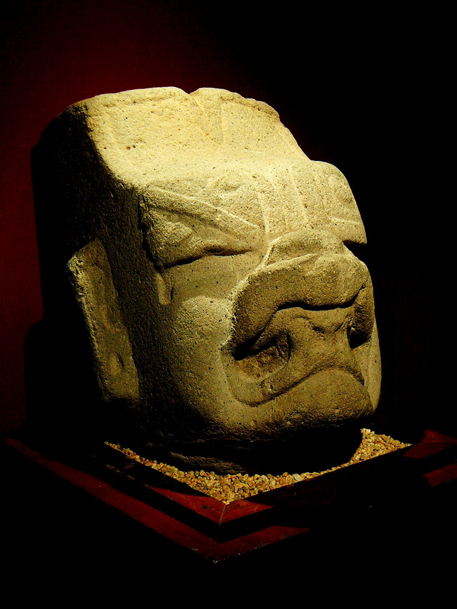 A statue head of the Olmec Were-Jaguar