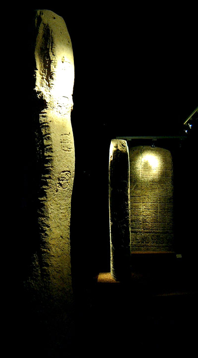 This picture captures 3 of the stelae housed at the museum that are from the Maya city of Tortuguero. The nearest is Monument 2, but the farthest is Monument 6, famed for its inscription which was thought to predict the end of the world in 2012.