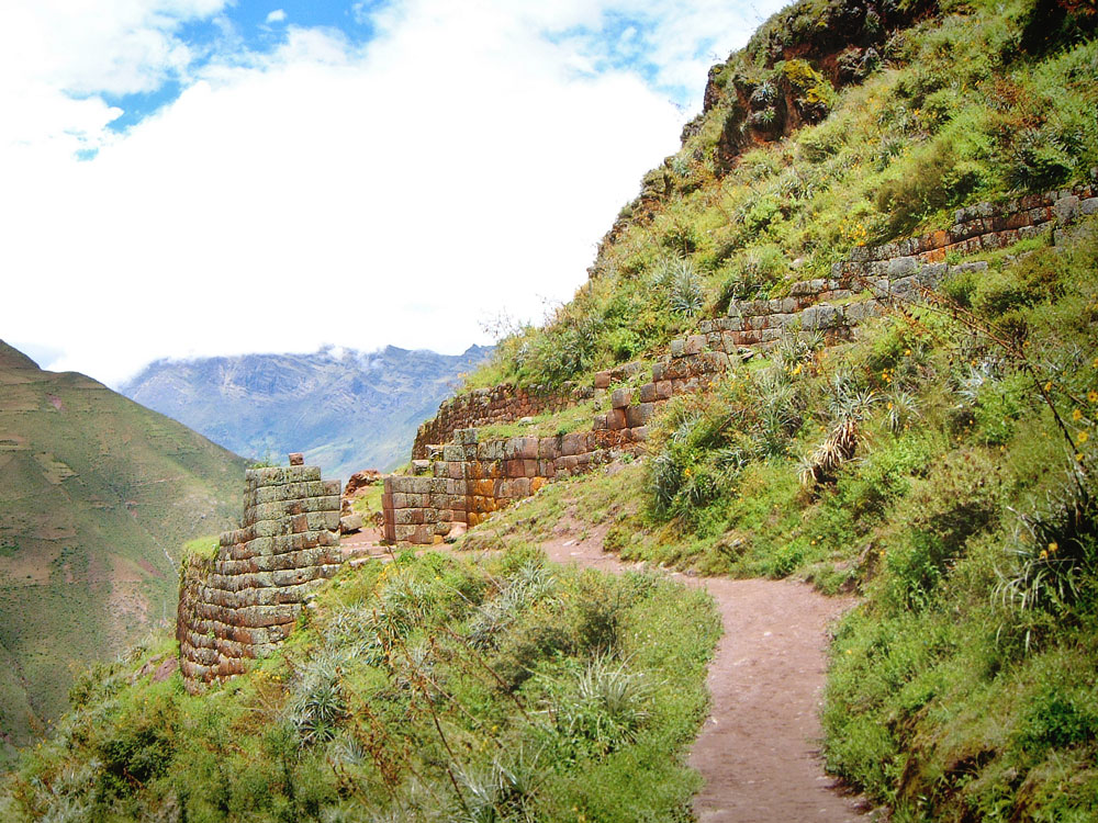 When entering the Pisac Archaeological Zone from the eastern entrance, near Qantus Raccay, the pathway will lead you through this defensive gateway called the Amaru Punku, or Serpent Gate, which probably once operated as a guarded checkpoint.