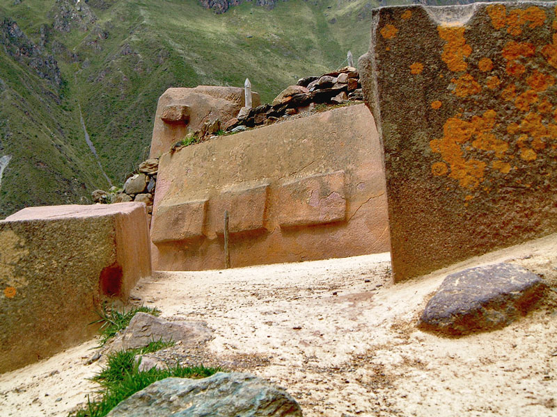 Behind the facade of the 6 huge monoliths, the Temple of the Sun lays incomplete as a shambolic graveyard of carved monoliths. It is thought the the Inca were in the process of rebuilding this ceremonial centre when they were interrupted by the arrival of the Spanish Conquistadors. The blocks are massive and curiously carved, but it is hard to tell whether this was deliberate or if they were work in progress.